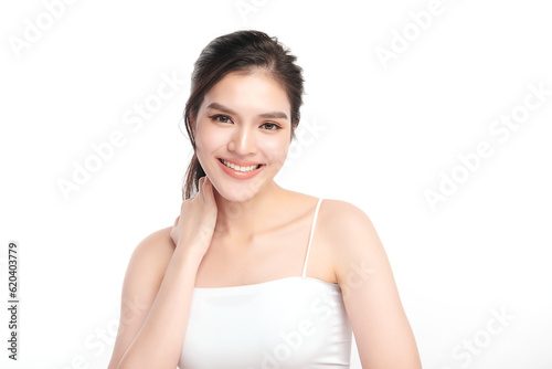 Beautiful young asian woman with clean fresh skin on white background, Face care, Facial treatment, Cosmetology, beauty and spa, Asian women portrait.