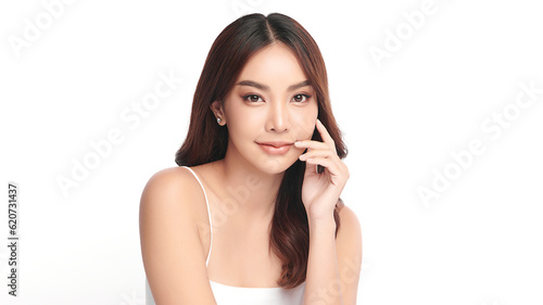 Beautiful young asian woman with clean fresh skin on white background, Face care, Facial treatment, Cosmetology, beauty and spa, Asian women portrait.