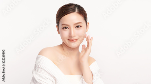 Beautiful young asian woman with clean fresh skin on white background, Face care, Facial treatment, Cosmetology, beauty and spa, Asian women portrait.