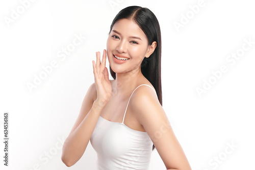 Beautiful young asian woman with clean fresh skin on white background, Face care, Facial treatment, Cosmetology, beauty and spa, Asian women portrait.