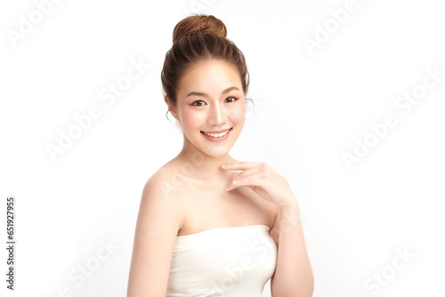 Beautiful young asian woman with clean fresh skin on white background, Face care, Facial treatment, Cosmetology, beauty and spa, Asian women portrait.