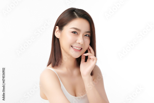 Beautiful young asian woman with clean fresh skin on white background, Face care, Facial treatment, Cosmetology, beauty and spa, Asian women portrait.