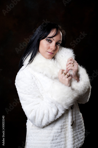woman, girl, female, woman, sexy, cute, dark, hair, pretty, young, glamour, fur, coat, white, make-up, fashion, casual attire, smile, happy, portrait, beautiful, beauty, relaxed, relax, relaxing, floor, lip, racked, stood, eye, eye, pose, goggles, looking, look, bow, low, key, low key, light, lighting, blue, face, people, cosmetic