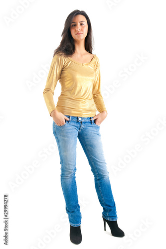 woman, girl, beautiful, lenght, full, young, isolated, white, fashion, attractive, background, beauty, brown, caucasian, copy space, cute, elegance, elegant, female, glamour, hair, coiffure, long, model, 1, portrait, pretty, sensuality, teenage, teenage, vertical