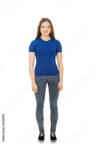 young, casual attire, woman, teenage, teenage, smiling, smile, full-length, long hair, beautiful, make up, white, background, isolated, european, attractive, adult, people, female, happy, girl, studio, pretty, person, 1, beauty, happiness, confident, natural, looking, cheerful, fresh, fashion, 16, youth, adolescence, caucasian, posing, face, friendly