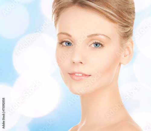 beauty, happy, young, woman, girl, face, beautiful, attractive, female, lovely, nice, pretty, cute, well-being, gorgeous, smiling, closeup, visage, clean, soft, smooth, skin, skincare, wellness, freshness, healthy, person, people, concept, calm, charming, purity, vitality, adorable, looking, 1, blue, light, background