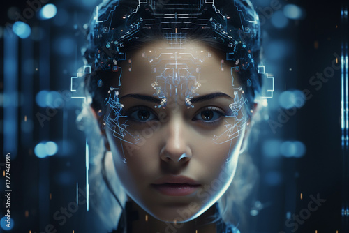 beautiful, young, woman, face, facial, recognition, grid, binary, interface, high, technology, concept, generative, ai, scanning, identification, future, information, sensor, security, biometric, futuristic, digital, person, double, scan, authentication, biometric, access, business, laser, exposure, beauty, datum, computer, health, cyber, human, eye, tracking, iris, point, granted, glowing, people, european, track, toning