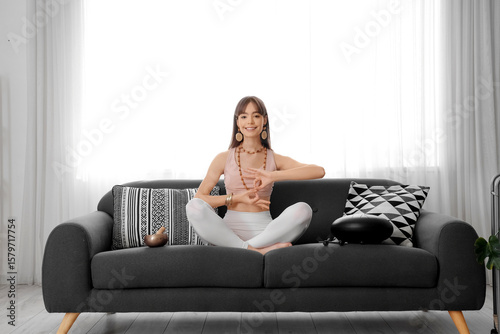beautiful, home, meditating, sofa, woman, young, asana, aura, body, bowl, calm, care, caucasian, drum, female, girl, hang, happy, harmony, health, hobby, indoor, leisure, lifestyle, mantra, meditation, mental, mind, nirvana, pause, peace, peaceful, people, person, portrait, practicing, relax, rest, self-control, singing, sitting, soul, tibetan, wellness, window, yoga, zen