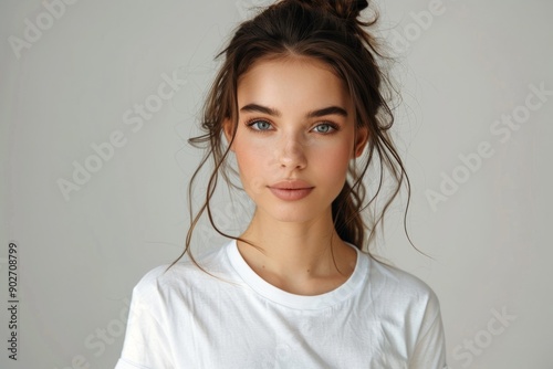 woman, young, girl, grey, portrait, white, beautiful, face, beauty, model, skin, hair, healthy, attractive, make-up, female, person, lady, caucasian, eye, brown, background, natural, pretty, freshness, coiffure, messy, clean