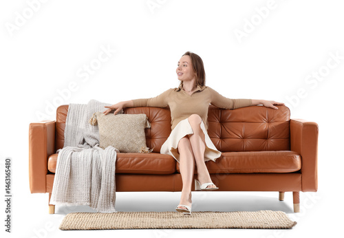 beautiful, brown, sitting, sofa, white, woman, young, adult, apartment, background, blank, caucasian, colours, comfort, comfortable, contemporary, couch, cosy, cushion, decor, design, detail, domestic, element, fashion, female, flat, furniture, girl, home, house, interior, isolated, lifestyle, modern, people, person, portrait, relax, rest, room, rug, seat, soft, style, stylish, trend