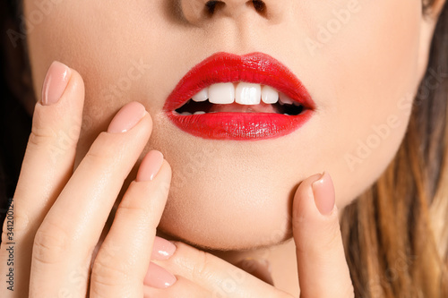 adult, attractive, background, beautiful, beauty, bright, caucasian, closeup, colours, cosmetic, decorative, face, fashion, fashionable, female, girl, glamour, hand, lady, lifestyle, lip, lipstick, make-up, make-up, model, modern, people, person, pretty, red, style, stylish, trend, visage, vogue, woman, young