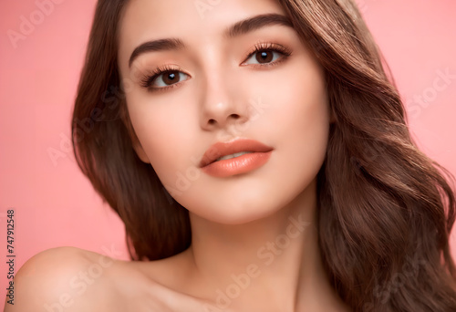 Beautiful young woman with clean fresh skin. Face of a girl with natural make-up.