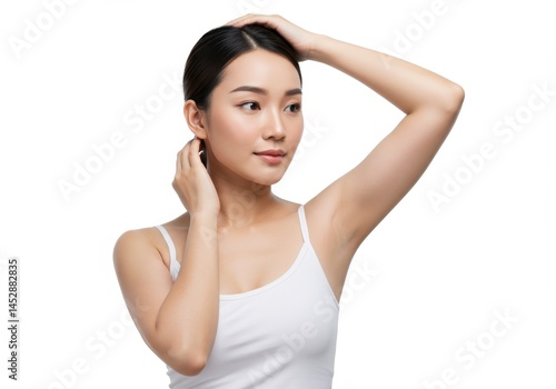 woman, skin, healthy, glow, model, young, care, smooth, body, girl, beauty, portrait, female, attractive, fashion, clean, fresh, honed, style, elegant, pretty, happy, white, background, studio