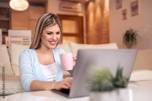 Beautiful young woman working from home