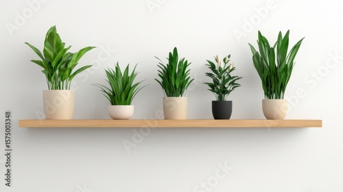 Beautifully Arranged Collection of Air Purifying Indoor Plants in Minimalist Pots on Shelf