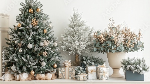 beautifully decorated Russian Christmas tree and a holiday box plant arrangement
