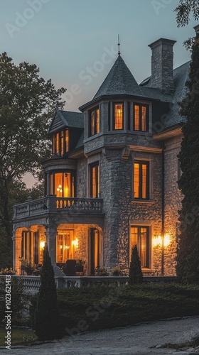 luxury home, exterior, dusk, warm, light, architecture, landscape, evening, residential, home, luxury, design, nature, scenery, tree, stone, window, illumination, terrace, garden, peaceful, charming, picturesque, historical, elegant, refined, symmetry, shadow, path, inviting, neighbourhood, upscale, modern, artistic, tranquil, beautiful, cosy, soft, glow, environment, sunset, view, aesthetic, driveway, style, calmness, rich, colours