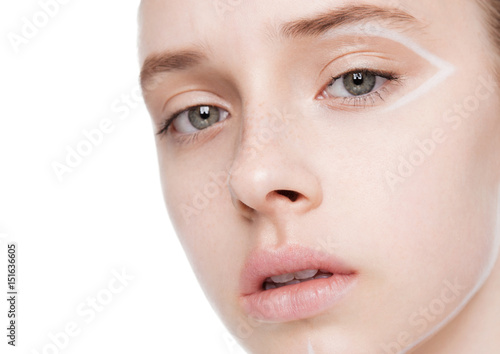 beautiful, care, skin, model, fashion, make-up, beauty, female, girl, freckle, natural, 1, health, lip, white, young, skincare, fresh, eye, background, cosmetic, hair, portrait, clean, healthy, spa, woman, make up, purity, isolated, brunette, people, honed, naked, attractive, brown, facial, pretty, complexion, studio, shoulder, adult, woman, treatment, pink, blond, cute, gloss
