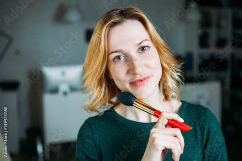 make-up, model, attractive, cosmetic, female, girl, room, woman, beauty, hair, style, beautiful, dressing, curly, hairdresser, adult, head, people, wavy, smiling, brush, eye, styling, palette, mirror, salon, hairdresser, hairstylist, light