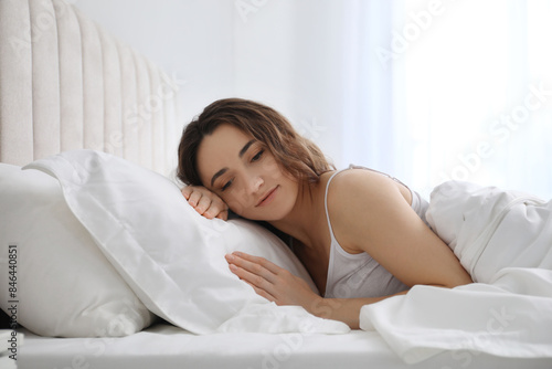 Bedtime. Beautiful woman lying in bed at morning