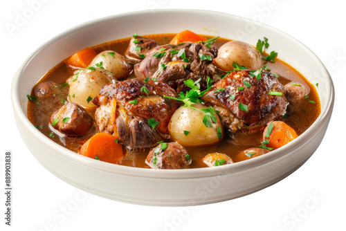 beef stew, stew, beef, meat, vegetable, carrot, onion, mushroom, gravy, brown sauce, parsley, herb, food, cookery, dinner, meal, dish, epicure, delicious, savoury, traditional, rustic, comfort food, home cooked, classic, homemade, hearty, autumn, winter, french cuisine, red wine, white bowl, food photography, closeup, topview, isolated