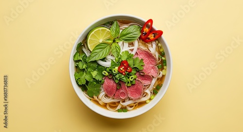 pho, noodle, beef, soup, bowl, food, asian, vietnamese, eatery, lunch, dinner, tasty, healthy, delicious, lime, herb, vegetable, spicey, meat, protein, fresh, hot, warm, meal, plate, dish, cookery, vietnam, asia, closeup