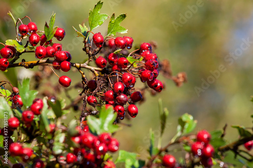 red, berry, fruit, nature, redcurrant, plant, twig, green, tree, garden, bush, food, leaf, autumn, summer, ripe, bunch, healthy, hawthorn, natural, forest, redcurrant