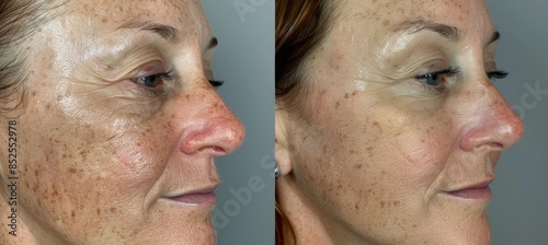 laser, treatment, skincare, transformation, closeup, comparison, skin, smooth, clear, dermatology, result, facial, pigmentation, before, after, improvement, beauty, health, cosmetic, procedure, therapy, complexion, rejuvenation, skincare, clinic, dermatological, medicals, effectiveness, contrast, left, right, smooth skin