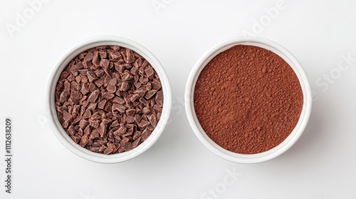 Before to after Whole cocoa nibs processed into rich, dark hot chocolate
