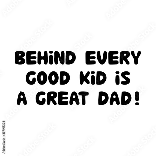 Behind every good kid is a great dad. Cute hand drawn bauble lettering. Isolated on white background. Vector stock illustration.