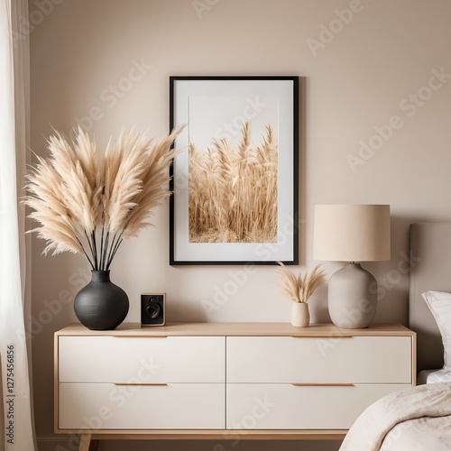 Beige Bedroom Interior with Pampas Grass and Modern Decor