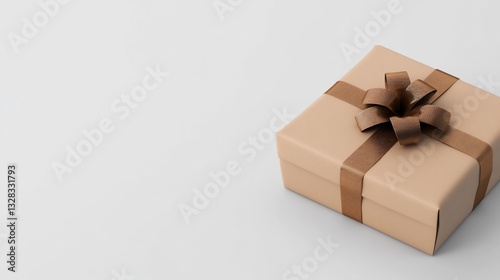 gift, present, box, ribbon, brown, beige, celebration, birthday, christmas, surprise, holiday, wrapping, package, event, party, decor, giving, elegant, bow, simple, square, isolated, object, texture, background, white, joy, happiness, occasion, love, family, friends, congratulation, appreciation, gratitude, kindness, thoughtfulness, material, paper, hand-made, craft, detail, luxury, special, festive, sale