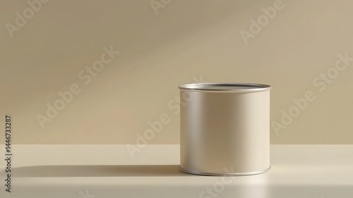 Beige metal can on a light beige surface