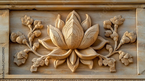 stone, carving, lotus, flower, floral, design, relief, sculpture, beige, texture, intricate, detail, ancient, art, architecture, pattern, decorative, sunlit, closeup, tone, masonry, artistic, cultural, ornamental, craftsmanship, natural, light, motif, artisan, hand, carved, wall, decoration, ornate, elegant, element, historical, decor, detailed, colours