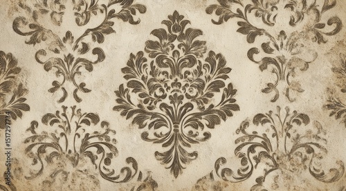 Beige textured background with a dark brown damask pattern, showing age and wear, reminiscent of antique wallpaper or fabric