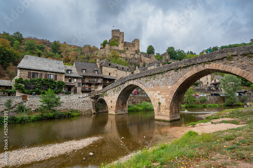 Belcastel medieval castle and town in the south of France, Aveyron Occitania, view of the antique medieval stone buildings, High quality photo