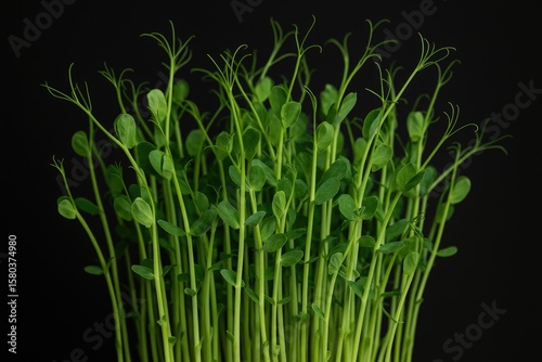 Benefits of microgreens: sprouted peas against a dark backdrop