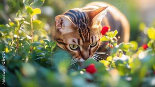 bengal, cat, park, greenery, sunny, nature, felino, wildlife, curious, exploring, striped, fur, bush, sunlight, lush, pet, animal, adventure, garden, vibrant, natural, beautiful, plant, forest, jungle, wild, peaceful, serene, moment, leisure, daytime, leisurely, calm, green, foliage, closeup, observation, surrounding, charming, distinctive, pattern, whisker, habitat, relaxing, environment, playful, spring