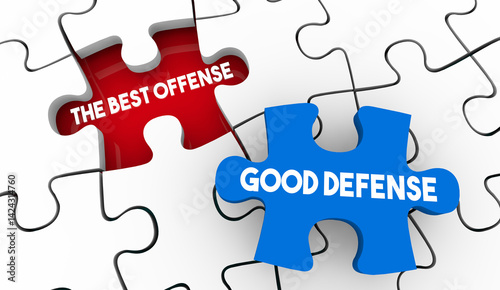 Best Offense is Good Defense Puzzle Piece Saying Quote Winning Strategy 3d Illustration