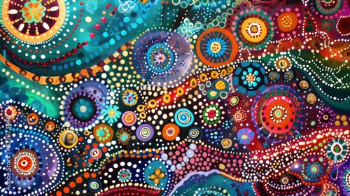 Betsy Ross, Picnic, cyber art blending, traditional Aboriginal dot paintings, HD