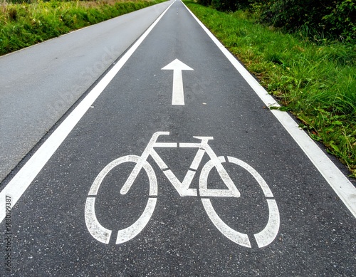bicycle, lane, road, asphalt, arrow, direction, cycling, infrastructure, transportation, traffic, path, way, cycle, bike, pathway, route, track, trail, street, highway, travel, journey, nature, green, grass, summer, spring, healthy, lifestyle, fitness, exercise, recreation, sport, activity, ecology, environment, safety, signs, symbol, marking, paint, white, black, grey, line, perspective