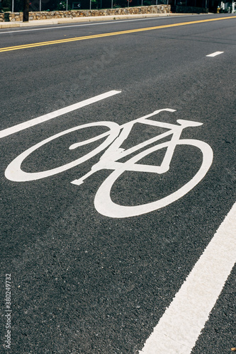 asphalt, bicycle, graphic, lane, painted, road, safety, suburban, traffic