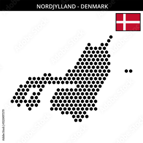 Big hexagonal dotted map of Nordjylland in Denmark
