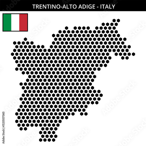 Big hexagonal dotted map of trentino-alto-adige in Italy