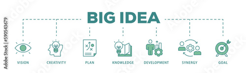 Big idea banner web icon vector illustration concept with icon of vision, creativity, plan, knowledge, development, synergy and goal