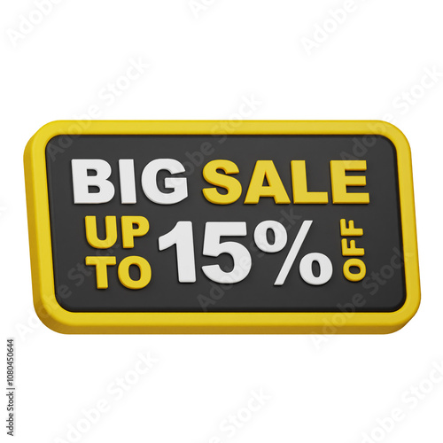 big sale up to 15% off 3d icon isolated on the white background