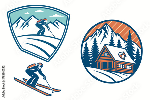 “Big Sky Montana ski and lodge icons, alpine vector”