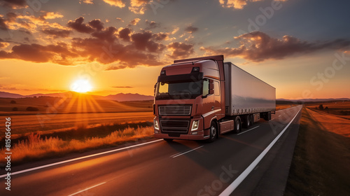 Big truck moving a highway on the sunset, concept of business and delivery industry