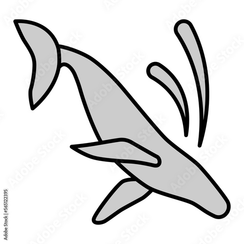 Big whale, sperm whale jumping into the water, splashing water - icon, illustration on white background, grey style