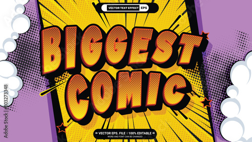 Biggest comic pop art style vector 3d text effect with comic book backdrop illustration